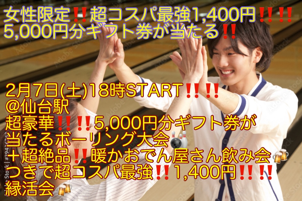 仙台地区の2月度のイベントは、年に1回の超大人気企画‼️‼️超豪華‼️5,000円のギフト券が当たる‼️ボーリング大会と、超絶品な暖かおでんが食べられるお店で飲み会を開催いたします‼️‼️